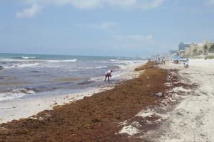 (250715) -- CANCUN, 15 julio, 2025 (Xinhua) -- Imagen del 14 de julio de 2025 de una playa con sargazo, en Cancún, estado de Quintana Roo, México. (Xinhua/Rodolfo Flores) (rf) (oa) (ah) (vf)