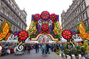 (251231) -- CIUDAD DE MEXICO, 31 diciembre, 2025 (Xinhua) -- Imagen del 30 de diciembre de 2025 de personas caminando frente a decoraciones de año nuevo cerca de la plaza del Zócalo, en la Ciudad de México, capital de México. A medida que se acerca el año 2026, decoraciones festivas se ven en toda la Ciudad de México, llenando la ciudad con un fuerte ambiente de Año Nuevo. (Xinhua/Li Mengxin) (ah) (ra) (vf)