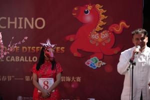 (260208) -- CIUDAD DE MEXICO, 8 febrero, 2026 (Xinhua) -- Imagen del 7 de febrero de 2026 de una participante presentando su disfraz durante el 8 Concurso de Disfraces "Año del Caballo", en el marco de la celebración del Año Nuevo chino, en la Ciudad de México, capital de México. (Xinhua/Li Muzi) (rtg) (ah)