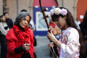 (260208) -- CIUDAD DE MÉXICO, 8 febrero, 2026 (Xinhua) -- Imagen del 7 de febrero de 2026 de la ganadora del primer lugar de la categoría grupal, Frida Quetzalli García Lins, reaccionando junto a su abuela, Alejandra Imelda Martínez García al finalizar el 8 Concurso de Disfraces "Año del Caballo", en el marco de la celebración del Año Nuevo chino, en la Ciudad de México, capital de México. Con un ambiente festivo, familiar y lleno de color, más de 15.000 personas se congregaron el sábado en el corazón de la Ciudad de México para participar en las celebraciones del Año Nuevo chino en el país latinoamericano, que incluyeron un vistoso desfile de leones y dragones, así como un concurrido concurso de disfraces inspirado en los animales del zodiaco. (Xinhua/Francisco Cañedo) (fc) (rtg) (da)