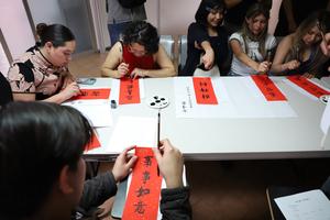 (260216) -- CIUDAD DE MEXICO, 16 febrero, 2026 -- Imagen del 15 de febrero de 2026 de personas practicando caligrafía china durante un evento en celebración del Año Nuevo chino en el Instituto Confucio de Universidad Nacional Autónoma de México (UNAM), en la Ciudad de México, capital de México. (Xinhua/Daniel Augusto) (fc) (oa) (ah) (vf)