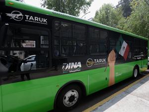 (250326) — CIUDAD DE MEXICO, 26 marzo, 2025 (Xinhua) — Imagen del 25 de marzo de 2025 del «Taruk», el primer autobús eléctrico de fabricación nacional durante su presentación, en la Ciudad de México, capital de México. Representantes empresariales y del Gobierno de México presentaron el martes el autobús eléctrico «Taruk», el primero en su tipo fabricado en el país, con el que se busca apoyar la transición a la electromovilidad y ser un contrapeso frente a las medidas arancelarias de Estados Unidos. (Xinhua/Francisco Cañedo) (fc) (ah) (ra) (vf)