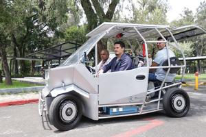 (250909) — CIUDAD DE MEXICO, 9 septiembre, 2025 (Xinhua) — Imagen del 4 de septiembre de 2025 del investigador del Departamento de Química del Centro de Investigación y de Estudios Avanzados (Cinvestav), Andrés Rodríguez Castellanos (d-frente), manejando el prototipo de automóvil «Hidrobinisa», en la Ciudad de México, capital de México. Investigadores del Cinvestav de México desarrollaron el primer prototipo de automóvil que funciona con hidrógeno y que es sustentable en su operación al no emitir contaminantes. (Xinhua/Francisco Cañedo) (fc) (oa) (ah) (ce)