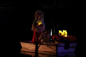 (251029) -- CIUDAD DE MEXICO, 29 octubre, 2025 (Xinhua) -- Imagen del 28 de octubre de 2025 de una bailarina del Ballet Folklórico de México de Amalia Hernández participando en el ensayo del espectáculo "La muerte en México está más viva que nunca" que se llevará a cabo en el marco de la festividad del Día de Muertos, en la isleta del Lago Menor del Bosque de Chapultepec, en la Ciudad de México, capital de México. (Xinhua/Francisco Cañedo) (fc) (jg) (da) (ce)