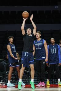 (251031) -- CIUDAD DE MEXICO, 31 octubre, 2025 (Xinhua) -- El jugador Cooper Flagg (frente), de Dallas Mavericks, participa en una práctica previa al partido correspondiente al NBA Mexico City Game 2025 ante Detroit Pistons, en la Ciudad de México, capital de México, el 31 de octubre de 2025. (Xinhua/Francisco Cañedo) (fc) (rtg) (ra) (ce)