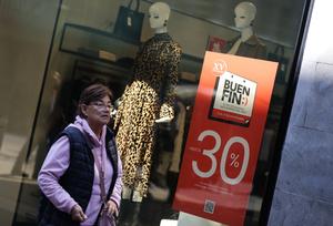 (251113) -- CIUDAD DE MEXICO, 13 noviembre, 2025 (Xinhua) -- Una mujer camina frente a una tienda en el primer día del evento de ventas especiales conocido como El Buen Fin, en la Ciudad de México, capital de México, el 13 de noviembre de 2025. (Xinhua/Francisco Cañedo) (fc) (jg) (da)