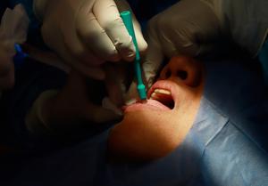 (260226) -- CIUDAD DE MEXICO, 26 febrero, 2026 -- Imagen del 24 de febrero de 2026 de un especialista realizando una extracción con el kit de diagnóstico virtual de cáncer bucal, en la Ciudad de México, capital de México. Especialistas de la UNAM desarrollaron el primer kit de diagnóstico virtual de cáncer bucal que, en solo tres pasos y en un plazo de 24 horas, hace posible determinar si una lesión es maligna, lo que favorece la detección oportuna de la enfermedad.(Xinhua/Pool Contreras) (fc) (da) (ra) (vf)