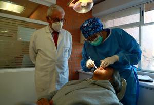 (260226) -- CIUDAD DE MEXICO, 26 febrero, 2026 -- Imagen del 24 de febrero de 2026 del profesor de tiempo completo de la Facultad de Odontología de la Universidad Nacional Autónoma de México (UNAM) y líder del proyecto, Javier Portilla Robertson (i), supervisando el trabajo de extracción con el kit de diagnóstico virtual de cáncer bucal, en la Ciudad de México, capital de México. Especialistas de la UNAM desarrollaron el primer kit de diagnóstico virtual de cáncer bucal que, en solo tres pasos y en un plazo de 24 horas, hace posible determinar si una lesión es maligna, lo que favorece la detección oportuna de la enfermedad. (Xinhua/Pool Contreras) (fc) (da) (ra) (vf)