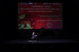 (251012) -- CIUDAD DE MEXICO, 12 octubre, 2025 (Xinhua) -- Imagen del 11 de octubre de 2025 del pianista Ding Yang realizando una presentación durante la gala "Bajo la misma luna: Concierto del Festival de Medio Otoño" en el Centro Nacional de las Artes, en la Ciudad de México, capital de México. Entre melodías, colores y símbolos de luna llena, México celebró el sábado el Festival de Medio Otoño de China con un emotivo concierto de gala que reflejó la belleza y espiritualidad de una de las festividades más importantes del pueblo chino. (Xinhua/Alejandro Medina) (fc) (oa) (da)