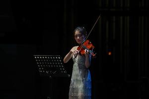 (251012) — CIUDAD DE MEXICO, 12 octubre, 2025 (Xinhua) — Imagen del 11 de octubre de 2025 de la violista Lu Jie realizando una presentación durante la gala «Bajo la misma luna: Concierto del Festival de Medio Otoño» en el CCentro Nacional de las Artes, en la Ciudad de México, capital de México. Entre melodías, colores y símbolos de luna llena, México celebró el sábado el Festival de Medio Otoño de China con un emotivo concierto de gala que reflejó la belleza y espiritualidad de una de las festividades más importantes del pueblo chino. (Xinhua/Alejandro Medina) (fc) (oa) (da)