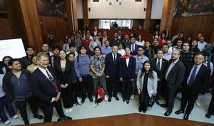 (250925) -- CIUDAD DE MEXICO, 25 septiembre, 2025 (Xinhua) -- Imagen del 24 de septiembre de 2025 del embajador de China en México, Chen Daojiang (c-frente), la directora de la Facultad de Economía de la Universidad Nacional Autónoma de México (UNAM), Lorena Rodríguez León (c-d-frente), y el coordinador del Centro de Estudios China-México de la UNAM, Enrique Dussel Peters (2-i-frente), posando al término de la conferencia magistral "La relación de China con México y América Latina en el contexto global", como parte del Ciclo de Conferencias del Centro de Estudios China-México de la Facultad de Economía de la UNAM, en la Ciudad de México, capital de México. México y China se encuentran estrechamente unidos por los lazos de amistad basados en el respeto mutuo y su cooperación es integral y amplia, "beneficiando auténticamente a ambas naciones y sus pueblos", afirmó el miércoles Chen Daojiang. (Xinhua/Francisco Cañedo) (fc) (jg) (ah) (ce)