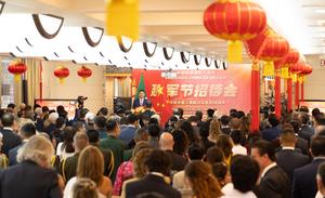 (250802) -- CIUDAD DE MEXICO, 2 agosto, 2025 (Xinhua) -- Imagen del 1 de agosto de 2025 del embajador de China en México, Chen Daojiang (atrás), pronunciando un discurso durante una recepción con motivo del 98° aniversario de la fundación del Ejército Popular de Liberación (EPL) de China, en la Ciudad de México, capital de México. La Embajada de China en México organizó el viernes una recepción con motivo del 98° aniversario de la fundación del EPL de China a la que asistieron funcionarios, legisladores, académicos mexicanos, empresarios de ambos países y representantes de las fuerzas armadas del país latinoamericano y otras naciones. (Xinhua/Li Mengxin) (jg) (da)