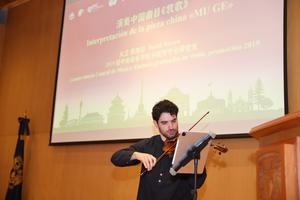 (250608) -- CIUDAD DE MEXICO, 8 junio, 2025 (Xinhua) -- Imagen del 7 de junio de 2025 del violinista mexicano David Rivera, egresado de la maestría en violín del Conservatorio Central de Música de Beijing, interpretando la pieza "Mu Ge" (Pastoral), durante la inauguración de la feria especial "Estudiar en Beijing" y Expo HSK 2025, en la Ciudad de México, capital de México. La feria especial "Estudiar en Beijing" y Expo HSK 2025 se llevó a cabo el sábado en la Ciudad de México, en un esfuerzo por acercar a los jóvenes mexicanos a la riqueza cultural, el idioma y las oportunidades académicas que ofrece China. (Xinhua/Li Mengxin) (rtg) (da)