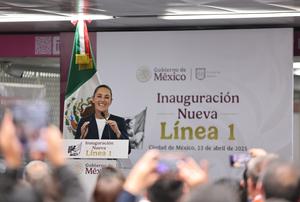 (250424) -- CIUDAD DE MEXICO, 24 abril, 2025 (Xinhua) -- Imagen del 23 de abril de 2025 de la presidenta mexicana, Claudia Sheinbaum, participando en la reapertura de un nuevo tramo de la Línea 1 del Metro de la Ciudad de México, en la Ciudad de México, capital de México. Sheinbaum encabezó el miércoles la reapertura de un nuevo tramo de la Línea 1 del Metro de la Ciudad de México, tras haber permanecido cerrado para realizar una renovación en un proyecto encabezado por la firma china CRRC. (Xinhua/Li Mengxin) (da) (ra) (vf)