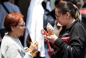 (260404) -- CIUDAD DE MEXICO, 4 abril, 2026 (Xinhua) -- Imagen del 1 de abril de 2026 de mujeres sosteniendo productos de la tienda china Mixue, en la Ciudad de México, capital de México. Más de un mes después de su apertura, la primera tienda de Mixue en México ha mantenido su popularidad. Su excelente relación calidad-precio, sus sabores populares y su repercusión en redes sociales han atraído a los consumidores locales, especialmente a los jóvenes. (Xinhua/Francisco Cañedo) (fc) (oa) (da)