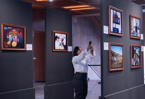 (250723) -- CIUDAD DE MEXICO, 23 julio, 2025 (Xinhua) -- Imagen del 18 de julio de 2025 de una visitante tomando fotografías una exposición de fotografías periodísticas, en la Ciudad de México, capital de México. Una exposición de fotografías periodísticas, organizada conjuntamente por la Agencia de Noticias Xinhua de China y la Cámara de Diputados de México, fue inaugurada el viernes en la Ciudad de México. (Xinhua/Li Mengxin) (ah) (ra) (vf)