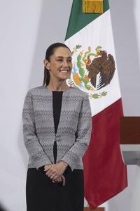 (250605) -- CIUDAD DE MEXICO, 5 junio, 2025 (Xinhua) -- Imagen cedida por la Presidencia de México de la presidenta mexicana, Claudia Sheinbaum, sonriendo durante su conferencia de prensa matutina, en Palacio Nacional, en la Ciudad de México, capital de México, el 5 de junio de 2025. Sheinbaum confirmó el jueves la participación de colombianos en la explosión de una mina que mató a elementos de la Guardia Nacional en la frontera entre los estados de Jalisco y Michoacán (occidente), y expresó que propondrá al presidente de Colombia, Gustavo Petro, formar un grupo binacional de alto nivel para abordar temas de seguridad. (Xinhua/Presidencia de México) (rtg) (ra) (ce)