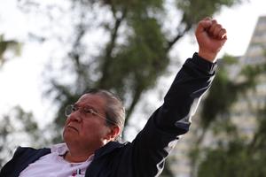 (250919) -- CIUDAD DE MEXICO, 19 septiembre, 2025 (Xinhua) -- Un hombre reacciona durante una ceremonia conmemorativa por las víctimas de los sismos del 19 de septiembre de 1985 y 2017, en la Ciudad de México, capital de México, el 19 de septiembre de 2025. (Xinhua/Francisco Cañedo) (fc) (oa) (ra) (vf)