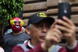 (251018) -- CIUDAD DE MEXICO, 18 octubre, 2025 (Xinhua) -- Un hombre porta una máscara de alebrije durante el 17 Desfile y Concurso de Alebrijes Monumentales del Museo de Arte Popular, en la Ciudad de México, capital de México, el 18 de octubre de 2025. (Xinhua/Francisco Cañedo) (fc) (oa) (da)