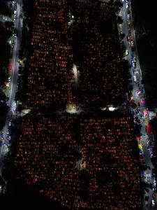 (251102) — CIUDAD DE MEXICO, 2 noviembre, 2025 (Xinhua) — Imagen tomada con un dron el 2 de noviembre de 2025 de personas participando en una velada en un panteón en el marco de la celebración del Día de Muertos, en la Ciudad de México, capital de México. (Xinhua/Francisco Cañedo) (fc) (rtg) (ah)