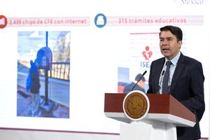 (250616) -- CIUDAD DE MEXICO, 16 junio, 2025 (Xinhua) -- Imagen cedida por la Presidencia de México del subsecretario de Derechos Humanos, Población y Migración, Arturo Medina, hablando durante la conferencia de prensa diaria del Gobierno mexicano, en Palacio Nacional, en la Ciudad de México, capital de México, el 16 de junio de 2025. Medina detalló que como parte de la estrategia denominada "México te Abraza", implementada frente a las políticas migratorias de Estados Unidos, del 21 de enero a la fecha, se han recibido a 24.082 mexicanos en los centros de atención fronterizos. (Xinhua/Presidencia de México) (rtg) (oa) (ce)