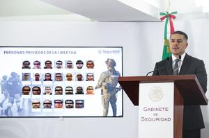 (250813) -- CIUDAD DE MEXICO, 13 agosto, 2025 (Xinhua) -- El secretario de Seguridad y Protección Ciudadana mexicano, Omar García Harfuch, habla durante una conferencia conjunta del gabinete de seguridad sobre el traslado de 26 delincuentes de alta peligrosidad a Estados Unidos, en la Ciudad de México, capital de México, el 13 de agosto de 2025. El Gobierno de México informó el miércoles que el traslado de 26 individuos identificados como "generadores de violencia" a Estados Unidos forma parte de una estrategia para fortalecer la seguridad pública, reducir los índices de violencia en el país y salvaguardar a la ciudadanía, todo ello en estricto respeto a la soberanía nacional. (Xinhua/Francisco Cañedo) (fc) (jg) (da) (ce)