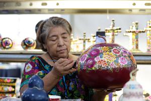 (250612) -- CIUDAD DE MEXICO, 12 junio, 2025 (Xinhua) -- Una artesana pinta una pieza durante el evento "ORIGINAL: Encuentro de Arte Decorativo y Utilitario" llevado a cabo en el Complejo Cultural Los Pinos, en la Ciudad de México, capital de México, el 12 de junio de 2025. (Xinhua/Francisco Cañedo) (fc) (jg) (da) (ce)