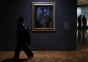 (260219) -- CIUDAD DE MEXICO, 19 febrero, 2026 (Xinhua) -- Imagen del 16 de febrero de 2026 de una persona caminando frente a una obra exhibida en la exposición "Relatos modernos. Obras emblemáticas de la Colección Gelman-Santander" en el Museo de Arte Moderno, en la Ciudad de México, capital de México. México vuelve a destacar en la escena cultural con la exposición "Relatos modernos. Obras emblemáticas de la Colección Gelman-Santander", que reúne 69 piezas fundamentales del arte moderno mexicano de figuras artísticas como Frida Kahlo, Diego Rivera y David Alfaro Siqueiros. (Xinhua/Daniel Augusto) (fc) (rtg) (ra) (ce)