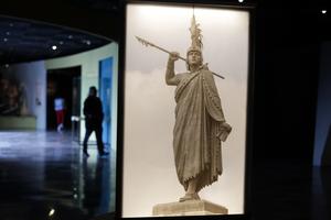 (250221) — CIUDAD DE MEXICO, 21 febrero, 2025 (Xinhua) — Imagen del 17 de febrero de 2025 de una imagen de Cuauhtémoc exhibida en la exposición «Cuauhtémoc. Historia y Memoria» en el Museo del Templo Mayor, en la Ciudad de México, capital de México. Una exposición que recorre la vida, obra y legado del último gobernante del imperio azteca, Cuauhtémoc, se presenta por primera vez en el Museo del Templo Mayor de la Ciudad de México. (Xinhua/Francisco Cañedo) (fc) (jg) (da) (vf)
