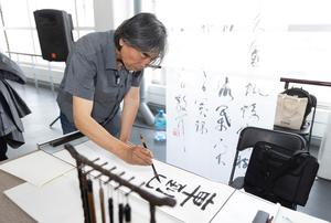 (250504) -- CIUDAD DE MEXICO, 4 mayo, 2025 (Xinhua) -- Imagen del 3 de mayo de 2025 de un calígrafo chino realizando caligrafía en una exposición de caligrafía china, en la Ciudad de México, capital de México. El sábado se inauguró aquí una exposición de caligrafía china en el marco del Salón Cultural "Lanting". Lanting, o el Pabellón de la Orquídea, fue famoso por el Prefacio de Lanting, una de las obras maestras del calígrafo Wang Xizhi, durante la dinastía Jin del Este (316-420). Wang es considerado por generaciones posteriores como el Santo de la Caligrafía. (Xinhua/Li Mengxin) (rtg) (oa) (da)