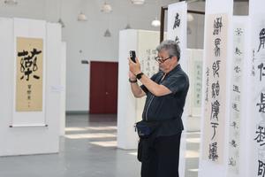 (250504) — CIUDAD DE MEXICO, 4 mayo, 2025 (Xinhua) — Imagen del 3 de mayo de 2025 de un visitante observando trabajos de caligrafía en una exposición de caligrafía china, en la Ciudad de México, capital de México. Una exposición de caligrafía china en el marco de los eventos del Salón Cultural «Lanting» se inauguró aquí el sábado. Lanting, o el Pabellón de la Orquídea, fue famoso por el Prefacio de Lanting, una de las obras maestras del calígrafo Wang Xizhi, durante la dinastía Jin del Este (316-420). Wang es considerado por generaciones posteriores como el Santo de la Caligrafía. (Xinhua/Li Mengxin) (rtg) (ah)