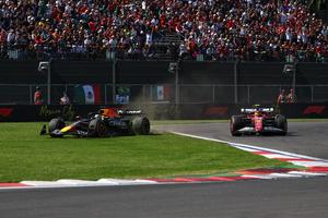 (251027) -- CIUDAD DE MEXICO, 27 octubre, 2025 (Xinhua) -- Imagen del 26 de octubre de 2025 del piloto neerlandés de la escudería Red Bull, Max Verstappen (i), saliéndose de la pista durante el Gran Premio de la Ciudad de México 2025 de Fórmula Uno, en el Autódromo Hermanos Rodríguez, en la Ciudad de México, capital de México. (Xinhua/Song Haiyuan) (rtg) (ah) (ce)