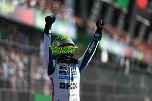 (251027) -- CIUDAD DE MEXICO, 27 octubre, 2025 (Xinhua) -- Imagen del 26 de octubre de 2025 del piloto británico de la escudería McLaren, Lando Norris, festejando después de ganar el Gran Premio de la Ciudad de México 2025 de Fórmula Uno, en el Autódromo Hermanos Rodríguez, en la Ciudad de México, capital de México. (Xinhua/Song Haiyuan) (rtg) (ah) (ce)
