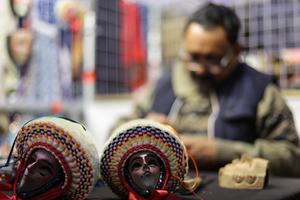 (251129) -- CIUDAD DE MEXICO, 29 noviembre, 2025 (Xinhua) -- Imagen del 28 de noviembre de 2025 de artesanías mexicanas vistas en una feria de arte textil original mexicano, en la Ciudad de México, capital de México. La feria reúne a artesanos de todo el país que presentan textiles, joyería y otros artículos hechos a mano. Artesanos internacionales de varios países, incluido China, también fueron invitados. (Xinhua/Francisco Cañedo) (oa) (da)