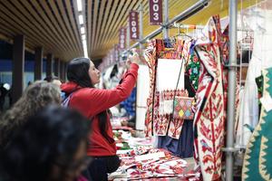 (251129) -- CIUDAD DE MEXICO, 29 noviembre, 2025 (Xinhua) -- Imagen del 28 de noviembre de 2025 de personas visitando una feria de arte textil original mexicano, en la Ciudad de México, capital de México. La feria reúne a artesanos de todo el país que presentan textiles, joyería y otros artículos hechos a mano. Artesanos internacionales de varios países, incluido China, también fueron invitados. (Xinhua/Francisco Cañedo) (oa) (da)