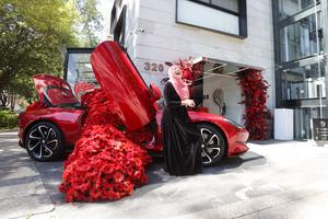 (250404) -- CIUDAD DE MEXICO, 4 abril, 2025 (Xinhua) -- Una mujer posa para una fotografía con una instalación decorada con flores durante el Festival Flores y Jardines, en la Ciudad de México, capital de México, el 4 de abril de 2025. (Xinhua/Francisco Cañedo) (fc) (oa) (da) (ce)