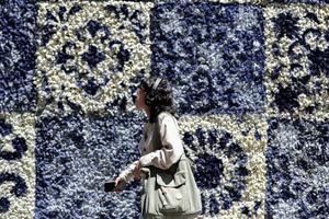 (250404) — CIUDAD DE MEXICO, 4 abril, 2025 (Xinhua) — Una mujer camina frente a una instalación decorada con flores durante el Festival Flores y Jardines, en la Ciudad de México, capital de México, el 4 de abril de 2025. (Xinhua/Francisco Cañedo) (fc) (oa) (da) (ce)