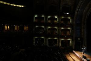 (250804) -- CIUDAD DE MEXICO, 4 agosto, 2025 (Xinhua) -- La gobernadora de Guanajuato, Libia Dennise García Muñoz, pronuncia un discurso durante la presentación oficial del 53° Festival Internacional Cervantino (FIC) en el Palacio de Bellas Artes, en la Ciudad de México, capital de México, el 4 de agosto de 2025. (Xinhua/Francisco Cañedo) (fc) (oa) (ah) (vf)