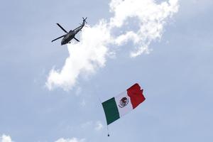(250916) -- CIUDAD DE MEXICO, 16 septiembre, 2025 (Xinhua) -- Un helicóptero vuela durante el Desfile Cívico Militar en conmemoración del 215 aniversario de la Independencia de México, en la Ciudad de México, capital de México, el 16 de septiembre de 2025. México celebró el martes el aniversario 215 del inicio de la lucha independentista contra el colonialismo español con la realización del tradicional Desfile Cívico Militar en la Ciudad de México, con la particularidad de que por primera ocasión se presentaron honores y se rindió el parte de novedades a una mujer, Claudia Sheinbaum, primera presidenta y comandanta suprema de las Fuerzas Armadas del país latinoamericano. (Xinhua/Francisco Cañedo) (fc) (oa) (ah) (ce)
