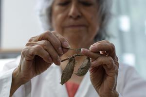 (250422) -- CIUDAD DE MEXICO, 22 abril, 2025 (Xinhua) -- Imagen del 11 de abril de 2025 de la bióloga mexicana, María Eugenia Díaz Batres, preparando capullos de la mariposa "cuatro espejos" para resguardarlos en un mariposario dentro de un jardín del Museo de Historia Natural y Cultura Ambiental, en el Bosque de Chapultepec, en la Ciudad de México, capital de México. Unos 2.000 capullos de la mariposa "cuatro espejos", una especie en peligro de extinción, han encontrado su refugio en un hermoso jardín del Museo de Historia Natural y Cultura Ambiental, en el Bosque de Chapultepec, donde los insectos pueden desarrollarse, abrir sus alas y completar su ciclo de vida, en medio de la vibrante Ciudad de México. (Xinhua/Francisco Cañedo) (fc) (oa) (ah) (ce)