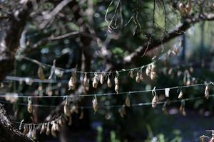 (250422) -- CIUDAD DE MEXICO, 22 abril, 2025 (Xinhua) -- Imagen del 11 de abril de 2025 de capullos de la mariposa "cuatro espejos" resguardados en un mariposario dentro de un jardín del Museo de Historia Natural y Cultura Ambiental, en el Bosque de Chapultepec, en la Ciudad de México, capital de México. Unos 2.000 capullos de la mariposa "cuatro espejos", una especie en peligro de extinción, han encontrado su refugio en un hermoso jardín del Museo de Historia Natural y Cultura Ambiental, en el Bosque de Chapultepec, donde los insectos pueden desarrollarse, abrir sus alas y completar su ciclo de vida, en medio de la vibrante Ciudad de México. (Xinhua/Francisco Cañedo) (fc) (oa) (ah) (ce)