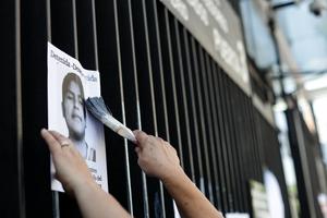 (250410) -- CIUDAD DE MEXICO, 10 abril, 2025 (Xinhua) -- Una mujer coloca una ficha de búsqueda durante la clausura simbólica del Senado de la República por parte de colectivos de búsqueda, en la Ciudad de México, capital de México, el 10 de abril de 2025. (Xinhua/Francisco Cañedo) (fc) (rtg) (ra) (vf)