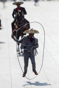 (251120) -- CIUDAD DE MEXICO, 20 noviembre, 2025 (Xinhua) -- Un hombre realiza una presentación en el Desfile Cívico Militar en conmemoración del 115 Aniversario del inicio de la Revolución Mexicana, en la Plaza de la Constitución, en la Ciudad de México, capital de México, el 20 de noviembre de 2025. La presidenta de México, Claudia Sheinbaum, destacó el jueves que la transformación histórica iniciada en el país en 1910, año de inicio de la Revolución Mexicana, sigue vigente en la defensa de la soberanía nacional, la justicia social y el rechazo a cualquier forma de injerencia extranjera. (Xinhua/Francisco Cañedo) (fc) (jg) (ah) (ce)