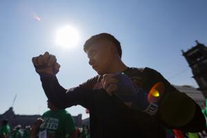 (250406) -- CIUDAD DE MEXICO, 6 abril, 2025 (Xinhua) -- Un hombre participa en la Clase Nacional de Boxeo llevada a cabo en el Zócalo de la Ciudad de México, capital de México, el 6 de abril de 2025. La presidenta mexicana, Claudia Sheinbaum, encabezó el domingo junto a varias leyendas del deporte mexicano el arranque de una clase masiva de boxeo en la plaza central de la Ciudad de México, actividad que se llevó a cabo de manera simultánea en las principales plazas de las entidades del país.(Xinhua/Francisco Cañedo) (fc) (rtg) (ah)