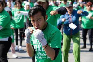 (250406) — CIUDAD DE MEXICO, 6 abril, 2025 (Xinhua) — Un hombre participa en la Clase Nacional de Boxeo llevada a cabo en el Zócalo de la Ciudad de México, capital de México, el 6 de abril de 2025. La presidenta mexicana, Claudia Sheinbaum, encabezó el domingo junto a varias leyendas del deporte mexicano el arranque de una clase masiva de boxeo en la plaza central de la Ciudad de México, actividad que se llevó a cabo de manera simultánea en las principales plazas de las entidades del país. (Xinhua/Francisco Cañedo) (fc) (rtg) (ah)