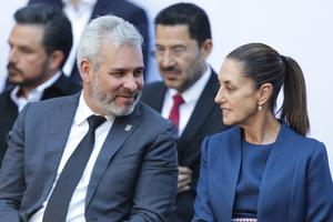 (251109) -- CIUDAD DE MEXICO, 9 noviembre, 2025 (Xinhua) -- La presidenta mexicana, Claudia Sheinbaum (d) y el gobernador de Michoacán, Alfredo Ramírez Bedolla (i), reaccionan durante la presentación del Plan Michoacán por la Paz y la Justicia, en el Palacio Nacional, en la Ciudad de México, capital de México, el 9 de noviembre de 2025. (Xinhua/Francisco Cañedo) (fc) (rtg) (da)