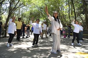 (250427) -- CIUDAD DE MEXICO, 27 abril, 2025 (Xinhua) -- Miriam Gloria H. (frente), instructora de Tai Chi, participa en la clase"Unete al Movimiento: Tai Chi Contigo Día Mundial del Tai Chi 2025" convocada por el Centro Cultural de China en México en el marco del Día Internacional del Tai Chi en el Zoológico de Chapultepec, en la Ciudad de México, capital de México, el 27 de abril de 2025. (Xinhua/Octavio Gómez) (ml) (rtg) (da)