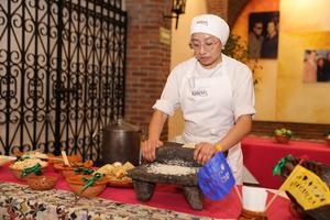 (250530) — CIUDAD DE MEXICO, 30 mayo, 2025 (Xinhua) — Imagen del 28 de mayo de 2025 de una chef moliendo granos de maíz para elaborar tamales en un restaurante, en la Ciudad de México, capital de México. Los tamales, un platillo tradicional mexicano con forma similar al zongzi chino, se elaboran con masa de maíz molida rellena de carne y especias, envuelta y cocida al vapor en hojas de maíz o de plátano. (Xinhua/Li Mengxin) (jg) (da) (vf)