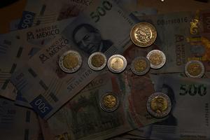 (250305) -- CIUDAD DE MEXICO, 5 marzo, 2025 (Xinhua) -- Imagen del 4 de marzo de 2025 de billetes y monedas de pesos mexicanos vistos en la Ciudad de México, capital de México. Los aranceles estadounidenses del 25 por ciento, que entraron en vigor a medianoche entre el lunes y el martes, ya han afectado a los mercados financieros de México. El peso mexicano se depreció casi un 1 por ciento el martes, alcanzando 20,90 por dólar estadounidense en las transacciones interbancarias. Los analistas atribuyen la caída a las preocupaciones por la escalada de las tensiones comerciales, advirtiendo que podrían seguir aumentando los aranceles estadounidenses. (Xinhua/Li Muzi) (da) (ra) (vf)