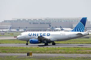(250722) -- CIUDAD DE MEXICO, 22 julio, 2025 (Xinhua) -- Un avión de la aerolínea United aterriza en el Aeropuerto Internacional de la Ciudad de México, en la Ciudad de México, capital de México, el 22 de julio de 2025. (Xinhua/Francisco Cañedo) (fc) (oa) (ah) (ce)